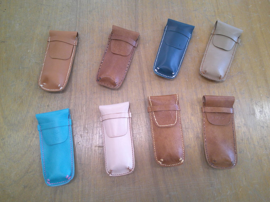 今回も革選びと糸選びからです。自分らしい色にするか、ちょっと挑戦してみるか…いつも迷いますね(^^♪