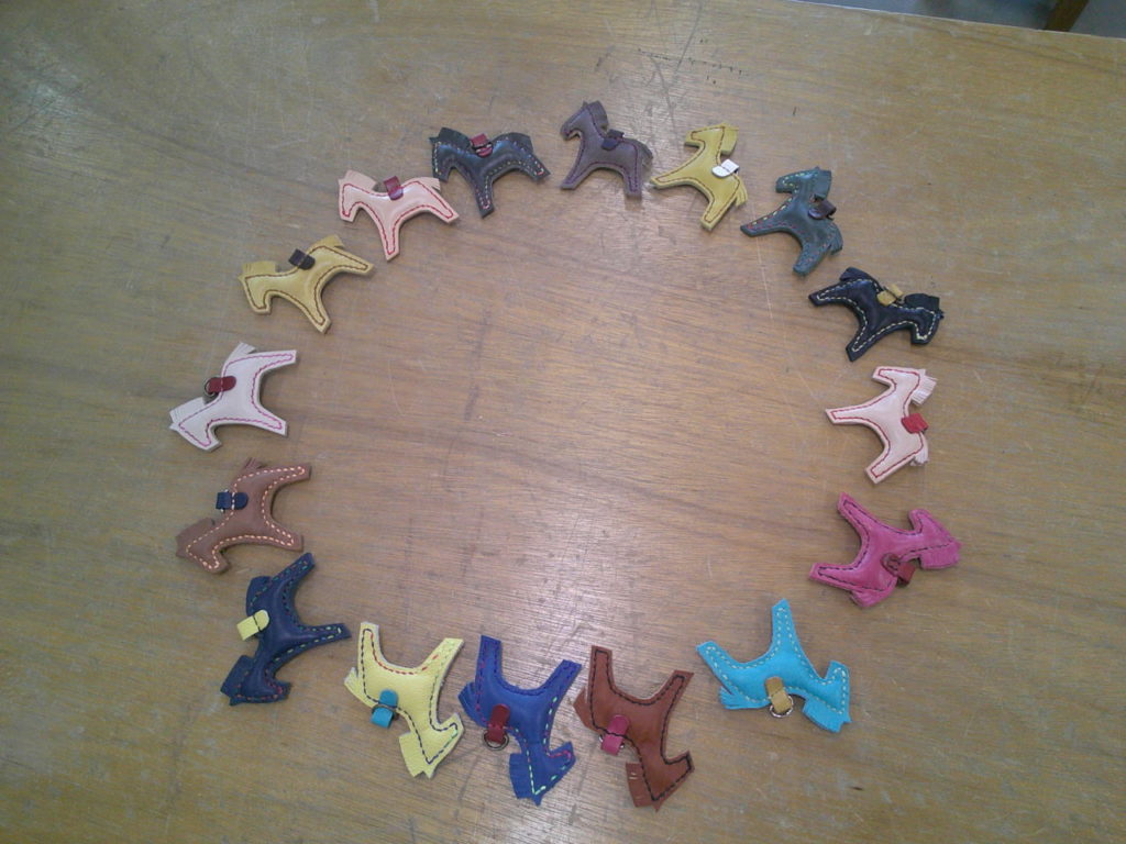 いつものように、まずは革選びからです。それぞれお好みの革と糸を選んで作ります。